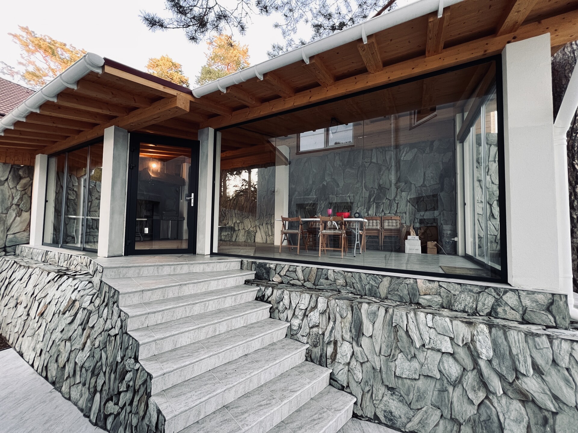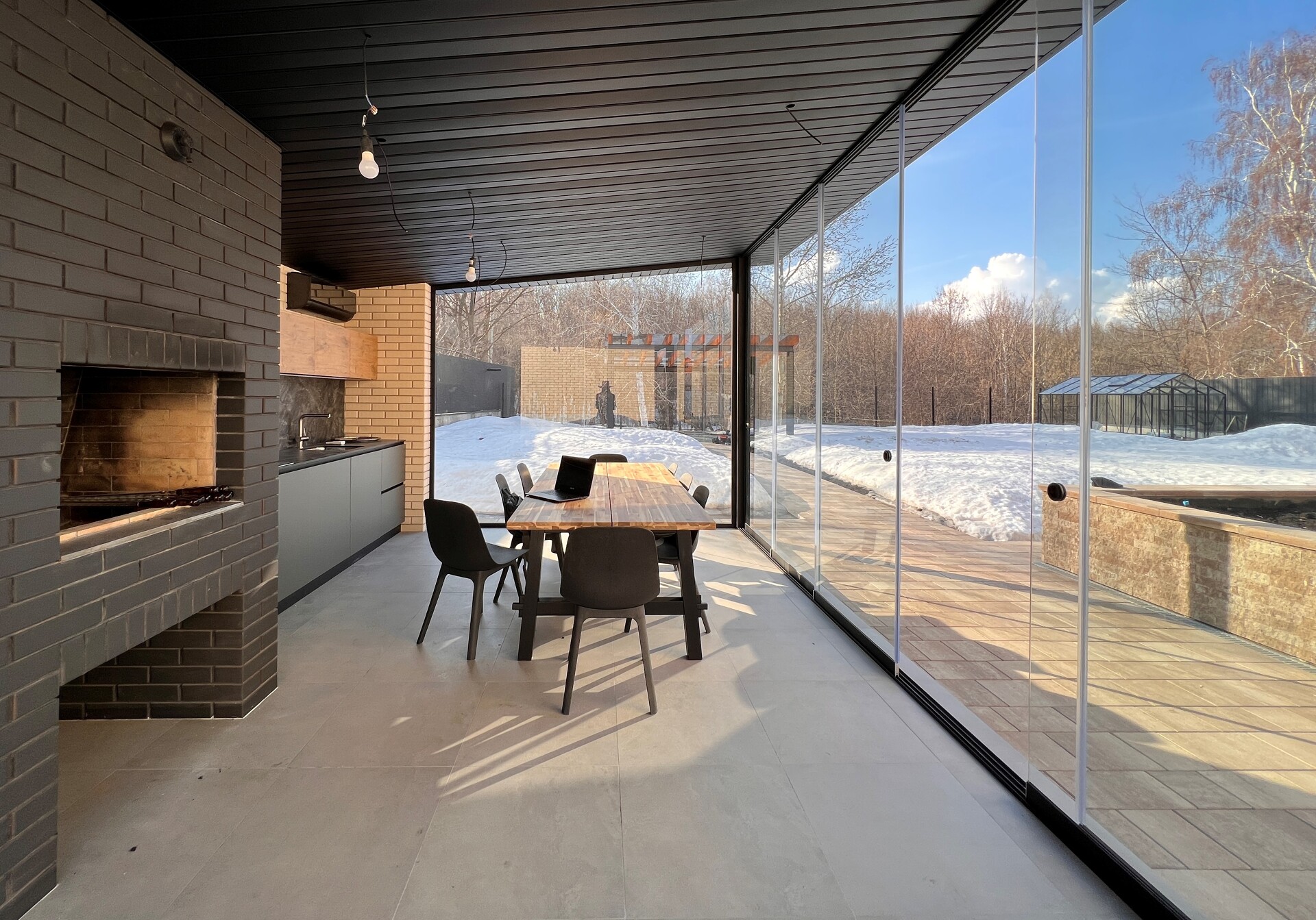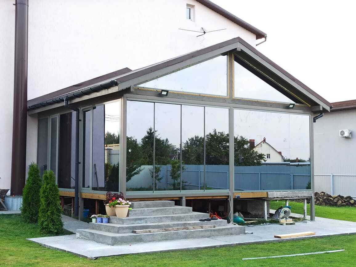 алюминиевый профиль и стекло с возможностью раздвижения и